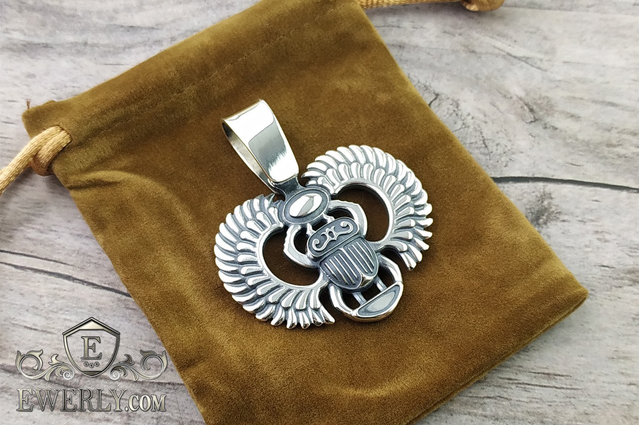 Подвеска - кулон «Жук скоробей» из серебра, амулет на шею