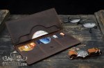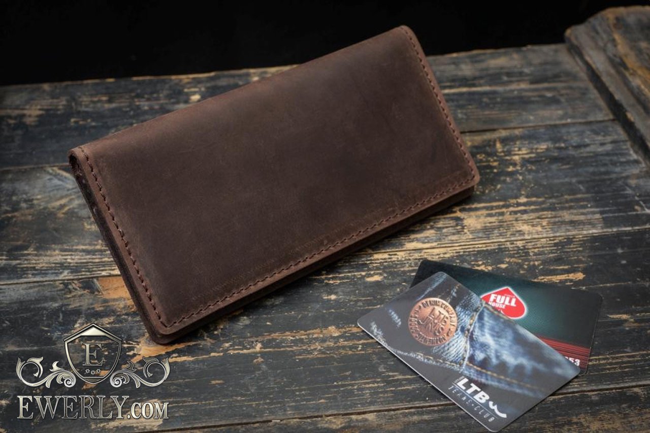 Абсолютный лидер продаж в данном классе. Простота изготовления позволила снизить цену, при этом сохранив все самые главные элементы качественного изделия – натуральная плотная кожа с винтажной структурой, вместительность и удобство. Три отделения по размеру купюр или телефона можно использовать и под любые другие нужды – документы, записи и прочее. Кошелек понравится вам или станет великолепным подарком для вашей половинки. За наши изделия Вам никогда не будет стыдно!